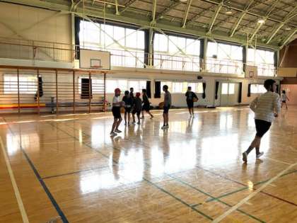 4校時、体育館で体育です。