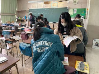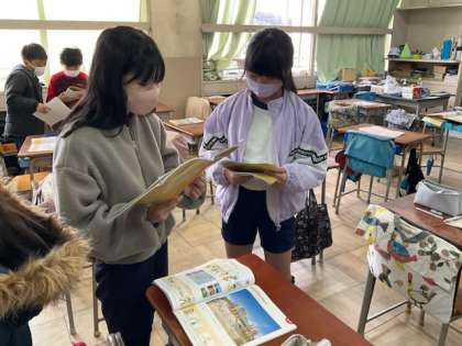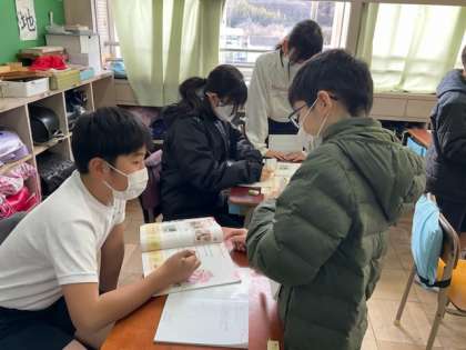 友達とペアワークをしています。