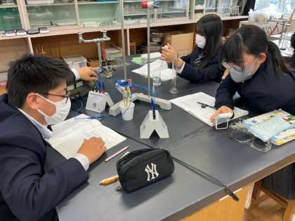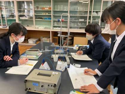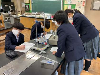 6校時、理科室で実験中です。