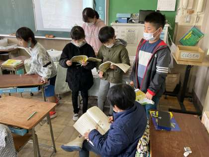 小2の国語では、「かさこじぞう」の音読発表に向けてグループで練習しました。