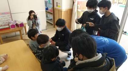 子どもたちは、園児が話す言葉を理解しようと、一生懸命です。
