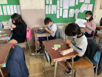 終わったら、6年生を送る会の準備をします。