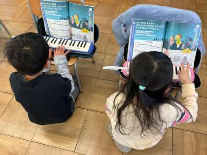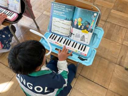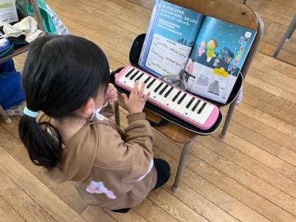 鍵盤ハーモニカで「きらきらぼし」を演奏しています。