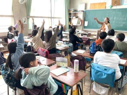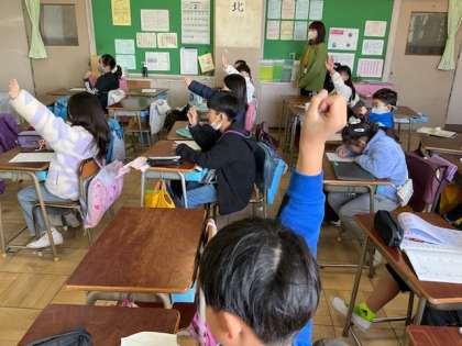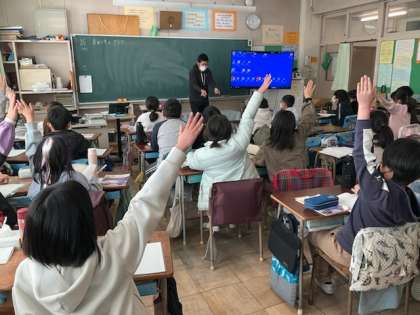 意欲的に挙手をして、発表する子どもたちの様子です。