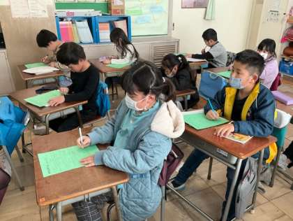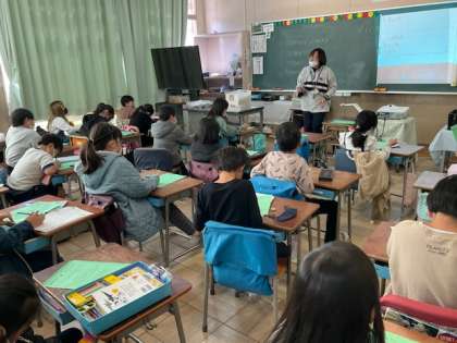 4校時、体育の振り返りをしています。