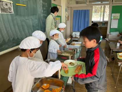 只今、給食準備中です。