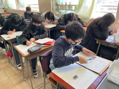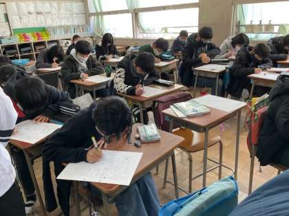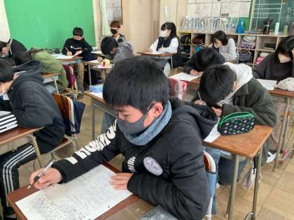 2校時、6年間の思い出をまとめています。