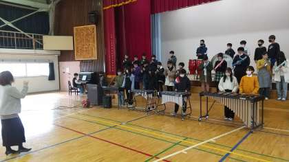二時間目の音楽では、本日4時間目に行われる6年生を送る会の練習です。