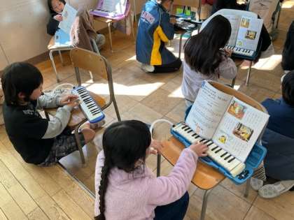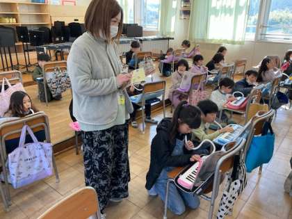 小2では、鍵盤ハーモニカでの演奏をしています。