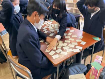 中学部の国語では、百人一首をしていました。
