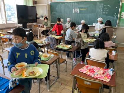 先週の給食準備の様子です。