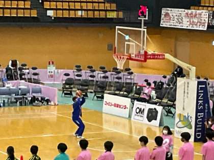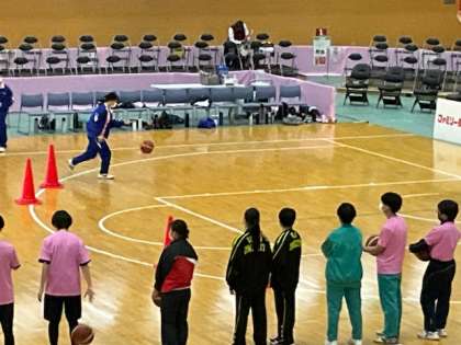 ドリブルシュートをしています。