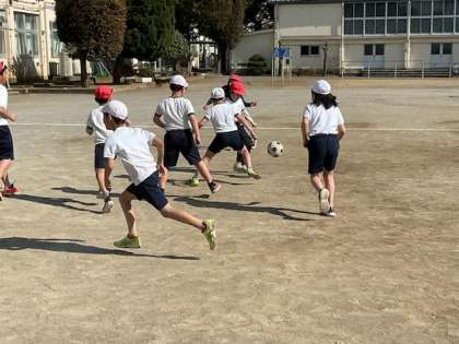 小3の体育では、サッカーのゲームをしています。