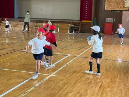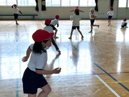 小1の体育では、校庭や体育館でボール運動をしています。