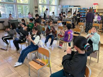 小3の音楽では、木琴や鉄琴、リコーダーで合奏をしています。