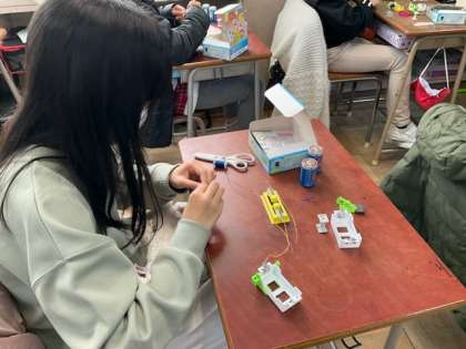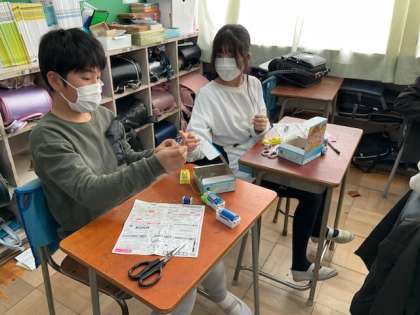 小5の理科では、電磁石の実験教材を組み立てていました。