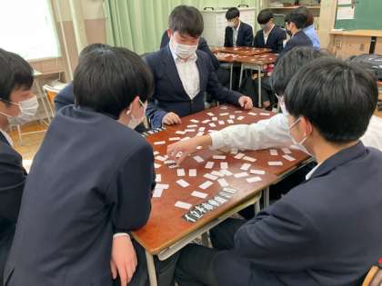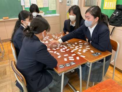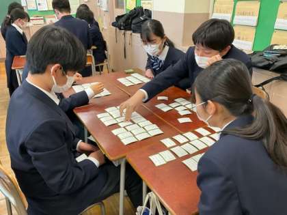 中3の国語では、百人一首や漢字のカードゲームをしていました。