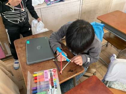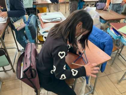 小3の総合的な学習の時間では、カイコのまゆから糸繰りをする準備をしていました。