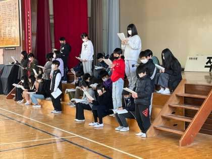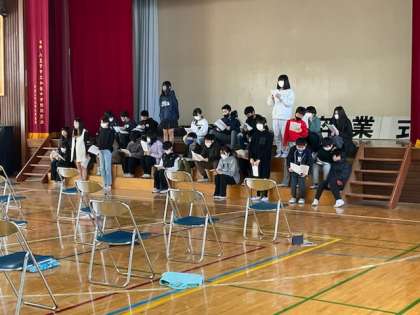 卒業式の練習をしています。