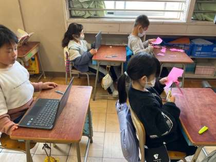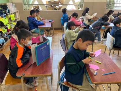 桜の花びらを画用紙から切り抜いている子もいます。