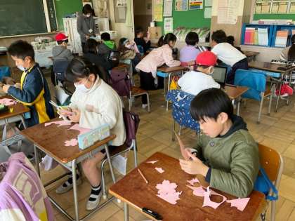 こちらも、ミライシードや桜の花びらの切り抜きをしています。