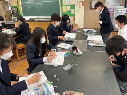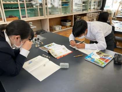 中1の理科では、岩石の観察をしました。