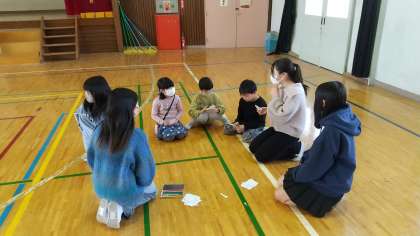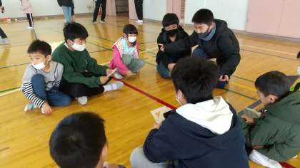 6年生が作ったカードと簡単な英語を使って、ゲームをしています。
