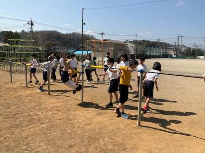 4校時、校庭で体育です。