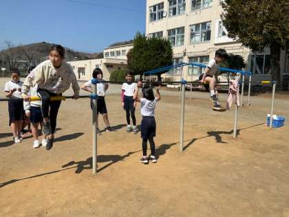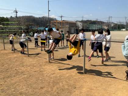 鉄棒の技を練習しています。