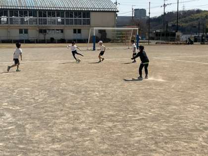 サッカー、キックベース、ドッヂボールに分かれて、ゲームをしています。