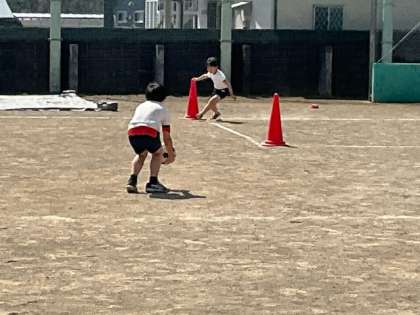 4校時、校庭で体育です。