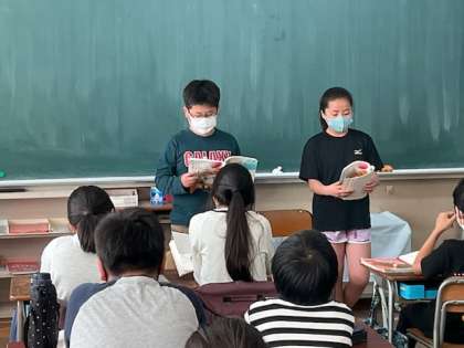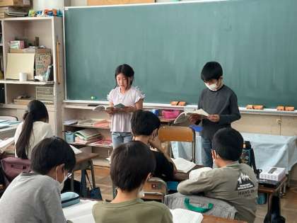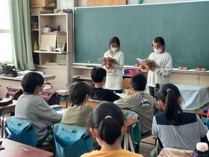 ペアで音読の発表をしています。