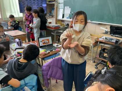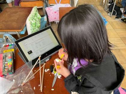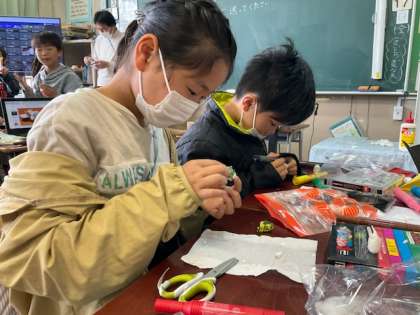 小3の総合的な学習の時間では、まゆ人形を作っています。