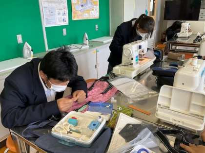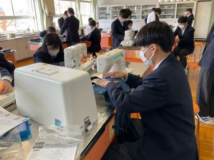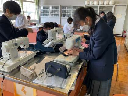中1の家庭科では、ミニトートづくりをしています。