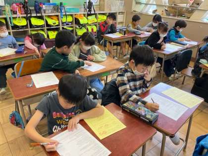 1校時、アンケートに回答しています。