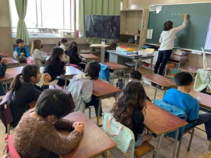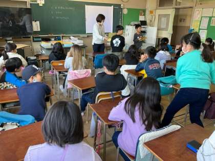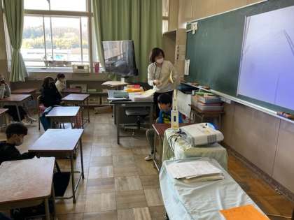 1校時、3月の生活目標の振り返りをしています。