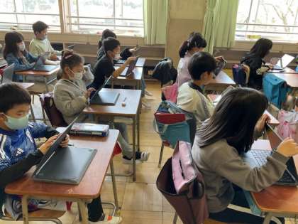 2校時、情報活用能力に関するアンケートに回答しています。