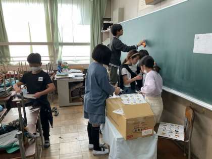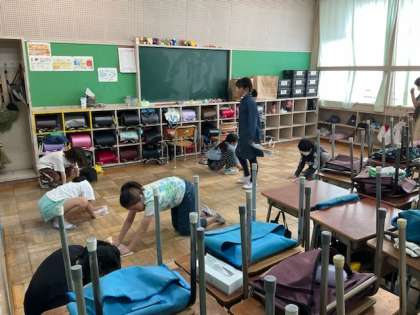 5校時、大掃除をしています。