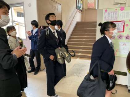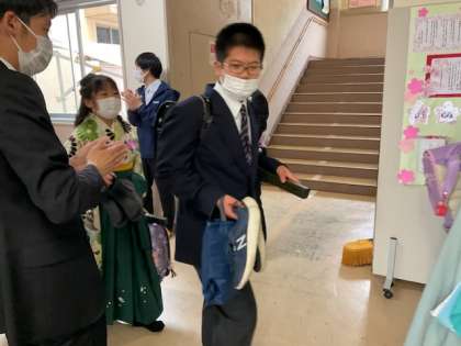 在校生、保護者、教職員みんなで見送りました。