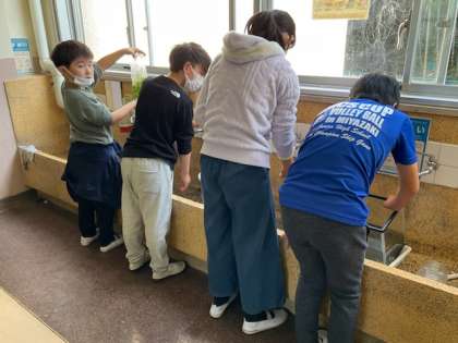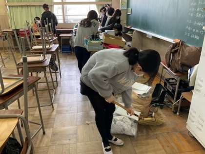 1校時、大掃除をしています。