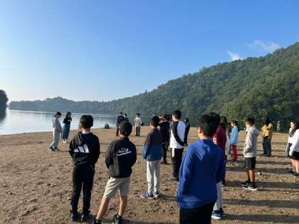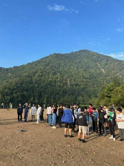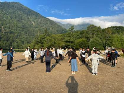?3日目、朝の会の様子です。最高の風景で、気持ちがよいです。