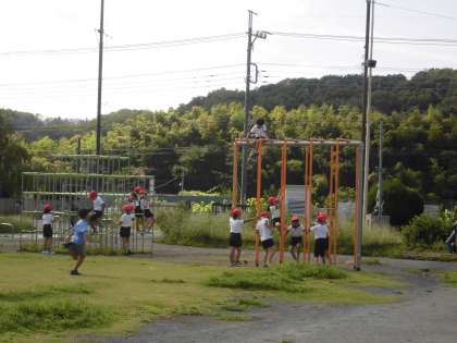 小学2年生は、校庭で鬼遊びと固定遊具を使った運動に取り組んでいます。