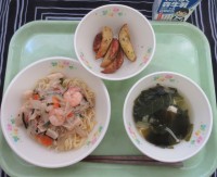 今日の献立・海鮮あんかけやきそば・青のりポテト・青菜と豆腐のスープ・牛乳10月に...