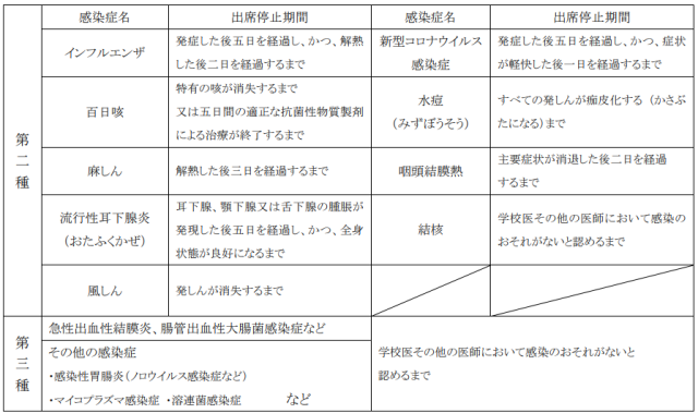 医師から感染のおそれがなく、「登校にさしつかえない」との診察をいただくまで登校を見合わせてください。