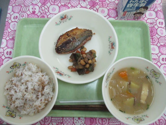 きょうのきゅうしょく9月24日(水) 公開日 2025/09/25 更新日 2025/09/24 給食室より 五穀ご飯 アジのからみやきごもくにまめさつまいものみそしる牛乳ごもくにまめがおいしくできあがりました。丁寧に味付けされています。こまかくきってあります。つまんで食べましょう。お箸名人の、日頃の練習の成果を確認できますね。 いいね(0)