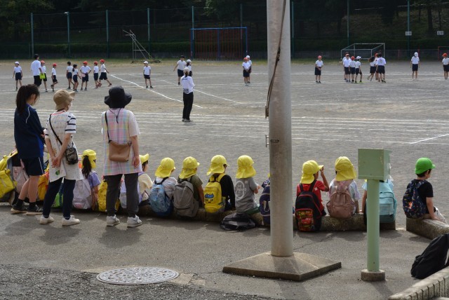 午前中、由木あすなろ保育園の園児さんが、運動会の練習を見学するために柏木小学校に来校しました。