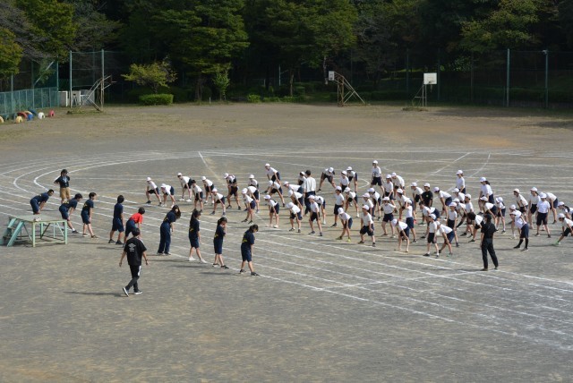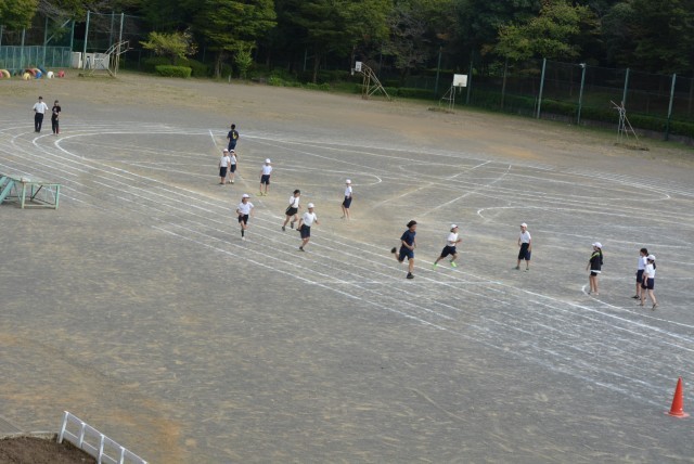 5時間目に南大沢中学校の陸上部が来校して、高学年に走り方を教えてくれました。