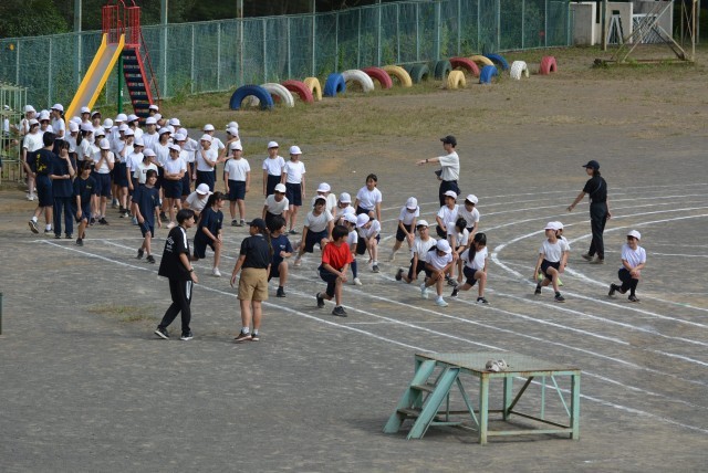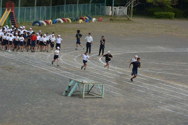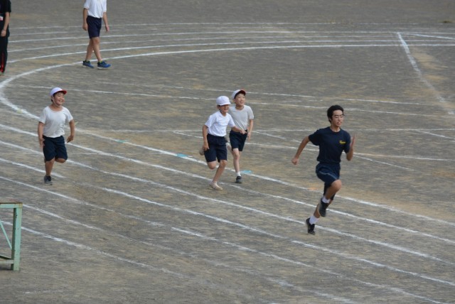 あっという間に走り抜ける中学生に、見ている児童から歓声があがりました。
