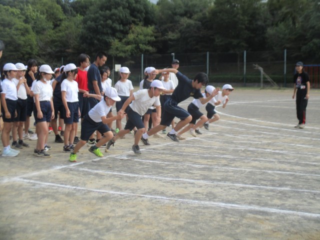 最後は、中学生にチャレンジしたい5・6年生とリレー対決をしました。中学生はバトンパスが上手でした。