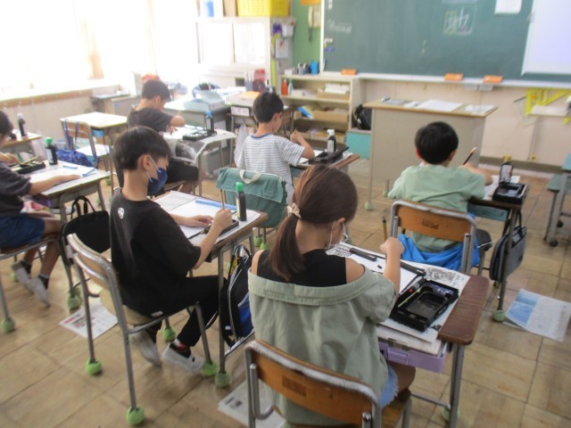4-2 国語(書写) 公開日 2025/10/10 更新日 2025/10/10 柏木小の出来事 「土地」という文字の「左右の組み立て方」を確認しました。「地」は偏(へん)と旁(つくり)のバランスをとることが難しかったですが、集中して書いていました。 いいね(0)